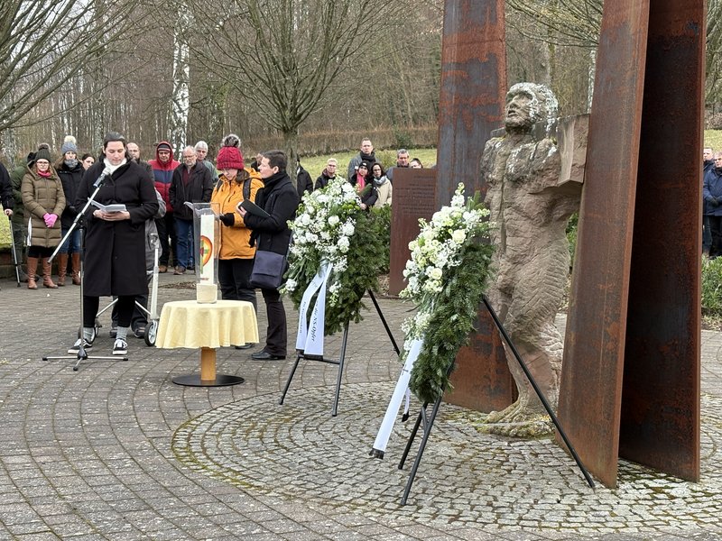 In diesem Jahr stand das Schicksal von Frauen und Mädchen in der NS-Psychiatrie im Mittelpunkt der Gedenkveranstaltung des Pfalzklinikums am 27. Januar. Das Interesse war groß: Fast 200 Besucher*innen hatten sich an der Gedenkstätte versammelt und damit mehr als in den Jahren zuvor. Sie erinnerten an die Patient*innen der damaligen Heil- und Pflegeanstalt, denen Gewalt angetan wurde – vor allem an Frauen und Mädchen, die zwangssterilisiert wurden.